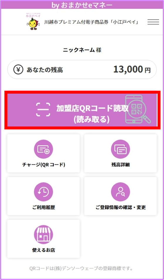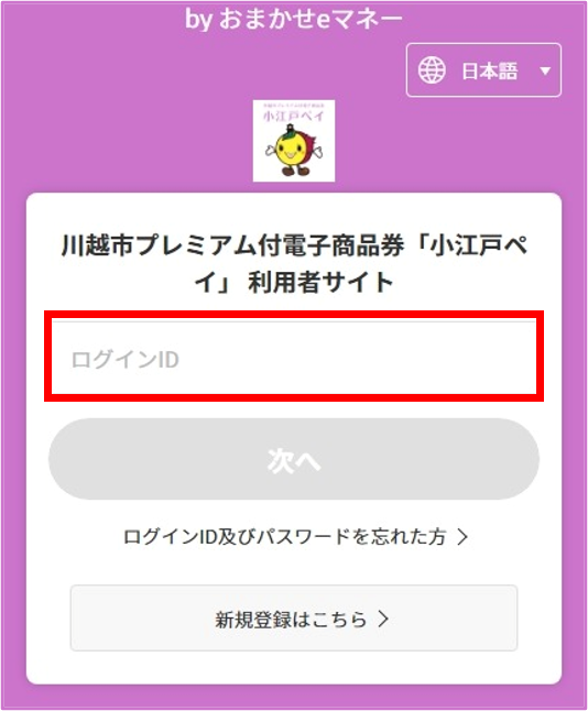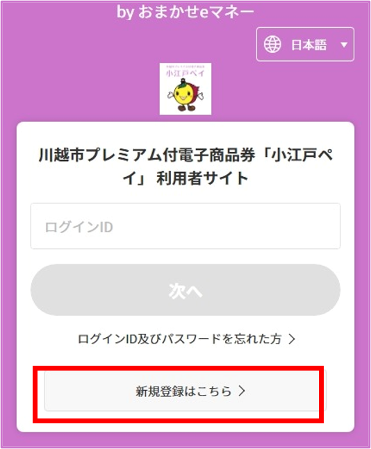 小江戸ペイの利用者サイトへアクセスします