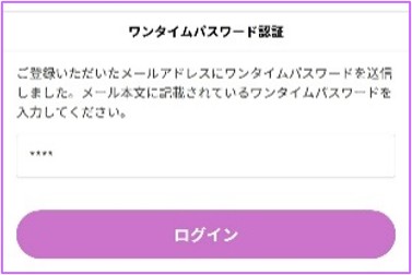 ワンタイムパスワードを入力し、ログインをタップ
