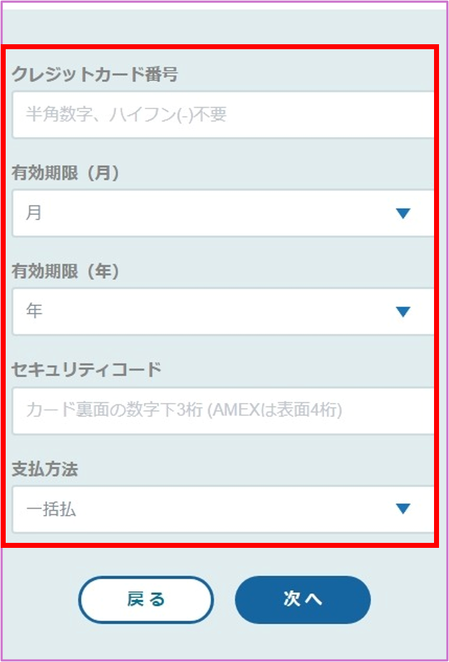 クレジットカード情報を入力し、次へをタップ