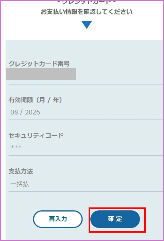 支払い内容を確認し、「確定」をタップ