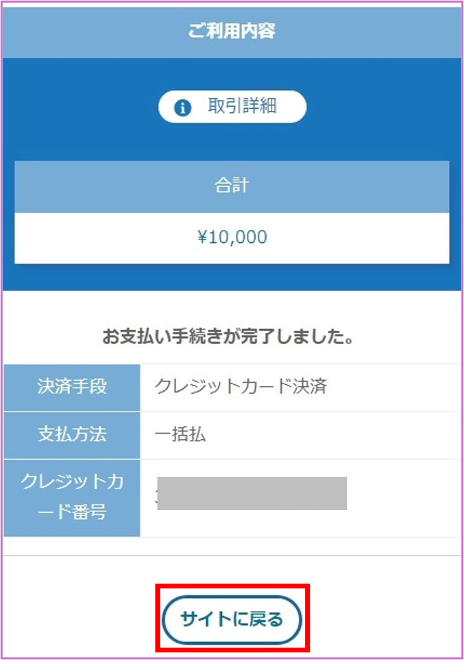 支払い完了後、「サイトに戻る」をタップ