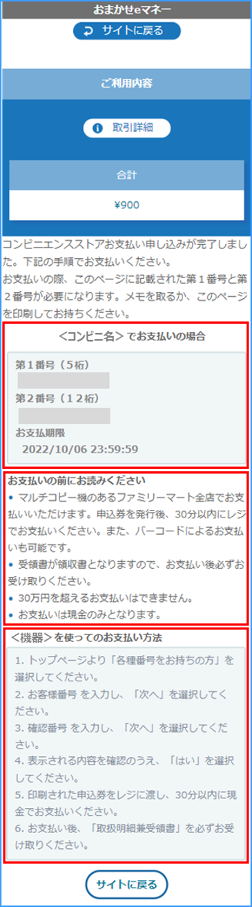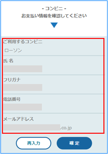 コンビニでのお支払いに必要な方法が表示されます
