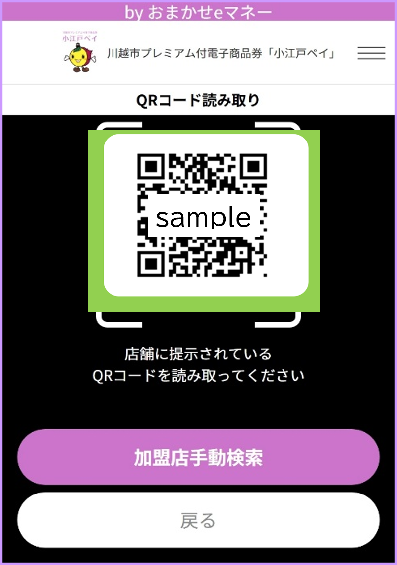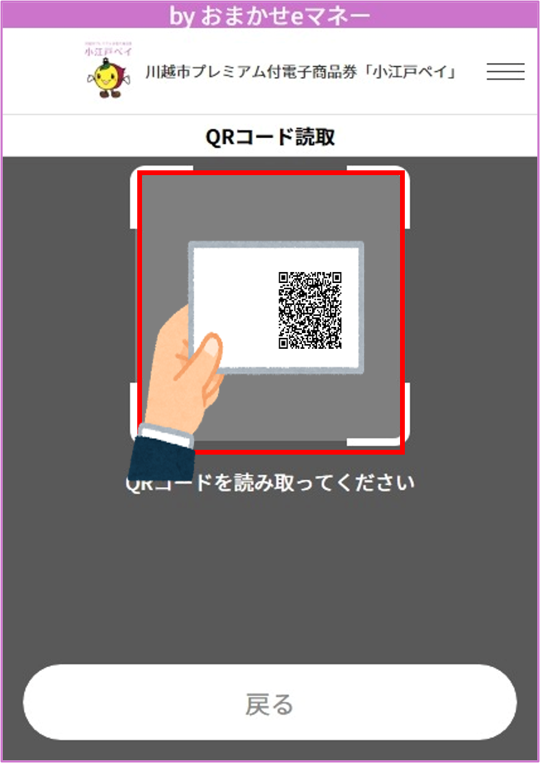 立ち上がったカメラで加盟店舗のQRコードを読み取り