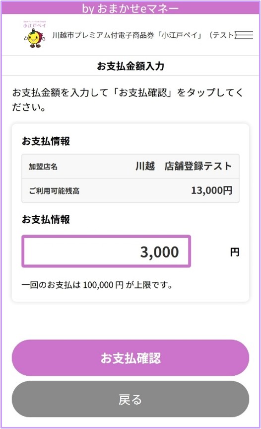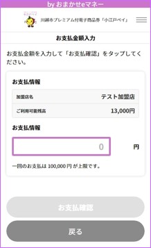 店舗名を確認し、支払金額を入力
