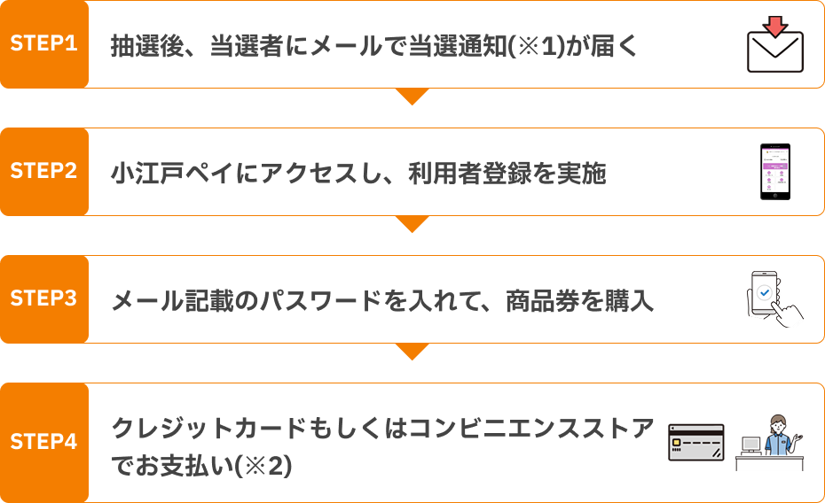 ※当選した口数以外の商品を選択すると、購入コード入力後にエラー表示となります。