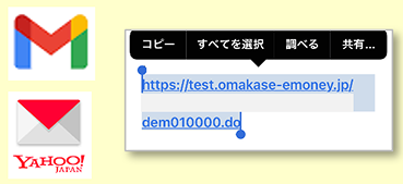 ※GmailやYahoo!メールなどの本文からURLをクリックすると、メール内のブラウザを開いてしまうことがあります。